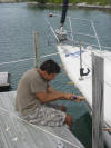 Windfreak fixing a leaking deck-hull joint, replacing a rotted diesel tank, and