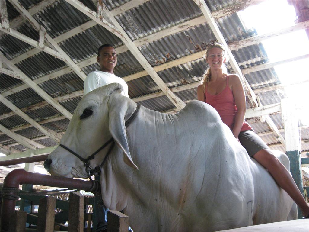 Vicky on the bucking Brahma bull. The "Waterfall Tour" included a trip