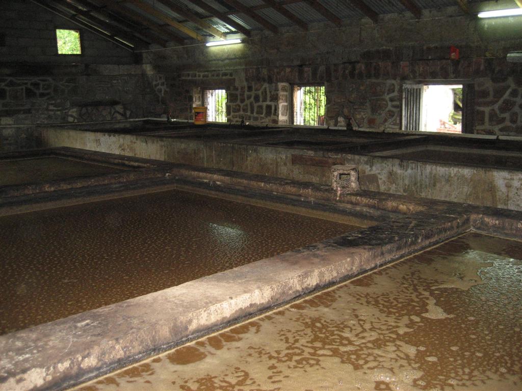 Here is picture of huge vats of fermenting sugar cane. The rum produced