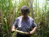 innards of the stalk, then spit the fibers out. The juice is pure cane.