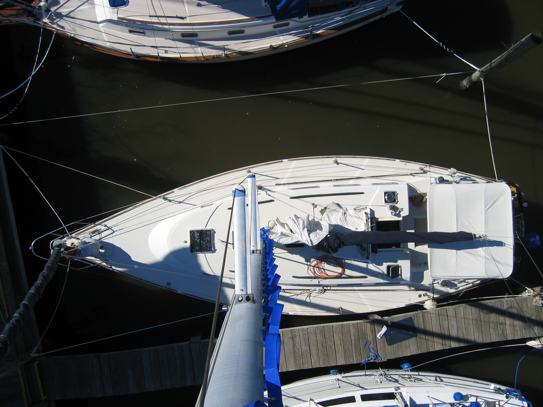 I like being up the mast. Even after I cracked a vertebre from jumping off the bleachers in 8th grade.